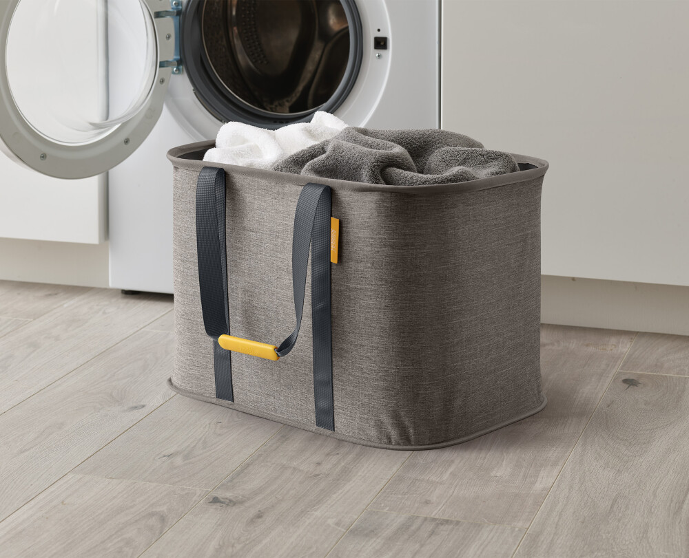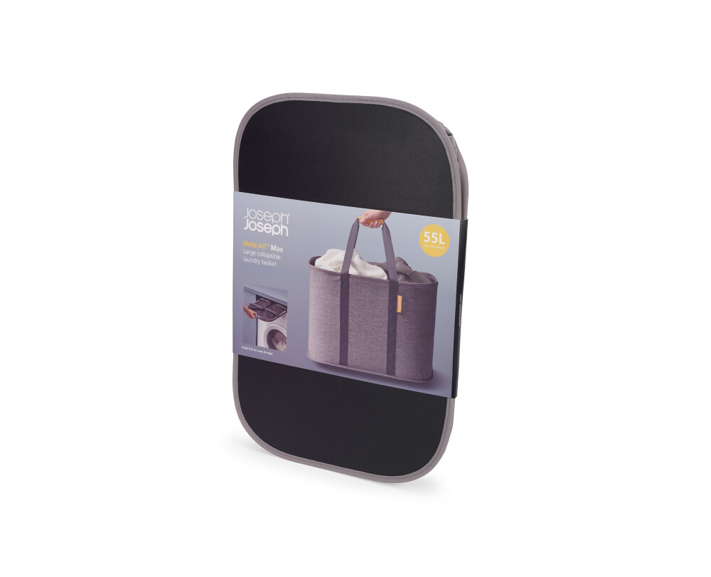 La cesta Hold-All Max 55 L de Joseph Joseph combina funcionalidad y diseño inteligente para facilitar la gestión de la ropa en el hogar. Con una capacidad de 55 litros, es capaz de albergar una carga completa de colada. Las asas tejidas permiten transportarla cómodamente de un lugar a otro, y cuando no está en uso se pliega hasta apenas 2 cm de alto para almacenarla en espacios reducidos — ideal para cuartos de lavado, baños o detrás de la lavadora. El tejido mantiene la forma aún estando vacía, lo que facilita cargarla, y el revestimiento interior resistente a la humedad facilita la limpieza y protege frente a prendas ligeramente húmedas.